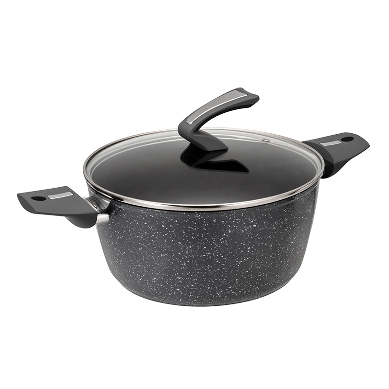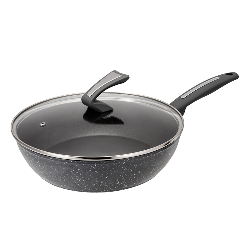 INNER:Black Nonstick coating OUTER:Dark Grey Marble Enamel heat resistant coating BOTTOM: Printing logo HANDLE: New bakelite with soft touch handle